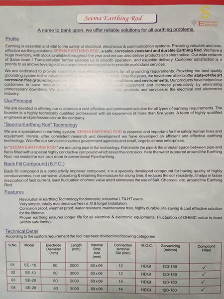 We are specialized in earthing system. SEEMA EARTHING ROD is essential and important for the safety human lives and equiments.